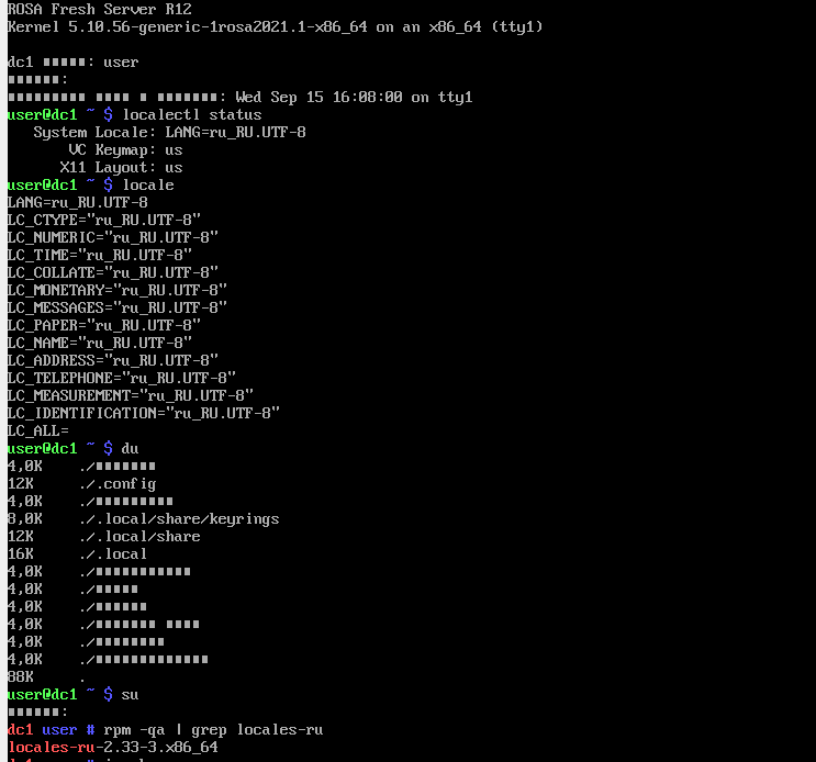 Created attachment 5531 [details] loc1.png 1. Инсталлируем образ консольной Анакондой 2. Выбираем в ней Русский 3. Ставим систему 4. Ребут Ожидалось 1. Будет русский в tty Фактически 1. В localectl status показывает: =========== LANG=en_US.UTF-8 <---------- LC_CTYPE="ru_RU.UTF-8" LC_NUMERIC="ru_RU.UTF-8" LC_TIME="ru_RU.UTF-8" LC_COLLATE="ru_RU.UTF-8" LC_MONETARY="ru_RU.UTF-8" LC_MESSAGES="ru_RU.UTF-8" LC_PAPER="ru_RU.UTF-8" LC_NAME="ru_RU.UTF-8" LC_ADDRESS="ru_RU.UTF-8" LC_TELEPHONE="ru_RU.UTF-8" LC_MEASUREMENT="ru_RU.UTF-8" LC_IDENTIFICATION="ru_RU.UTF-8" LC_ALL= =========== 2. Сделал localectl set-locale ru_RU.UTF-8, и ребутнулся. Не помогает. По localectl status выдает =========== LANG=ru_RU.UTF-8 LC_CTYPE="ru_RU.UTF-8" LC_NUMERIC="ru_RU.UTF-8" LC_TIME="ru_RU.UTF-8" LC_COLLATE="ru_RU.UTF-8" LC_MONETARY="ru_RU.UTF-8" LC_MESSAGES="ru_RU.UTF-8" LC_PAPER="ru_RU.UTF-8" LC_NAME="ru_RU.UTF-8" LC_ADDRESS="ru_RU.UTF-8" LC_TELEPHONE="ru_RU.UTF-8" LC_MEASUREMENT="ru_RU.UTF-8" LC_IDENTIFICATION="ru_RU.UTF-8" LC_ALL= =========== Но русского нет в tty. В ssh норм все.