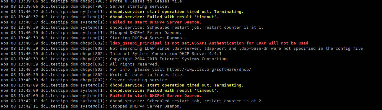 Created attachment 5567 [details] dhcp1.png dhcp-server не стартует при отсутствии ldap сервера Патч: https://gitlab.isc.org/isc-projects/dhcp/-/merge_requests/56